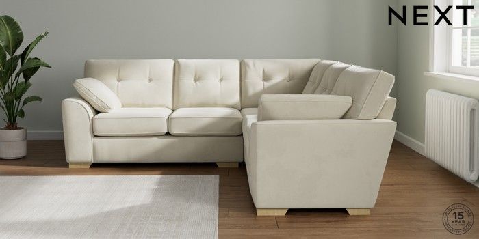 7.2.10 Stamford Buttoned Back Medium Corner Sofa - Universal Luxe Chenille Oyster Large Square Angle - Light | Made Click here to use our website with more accessibility support, for example screen readers