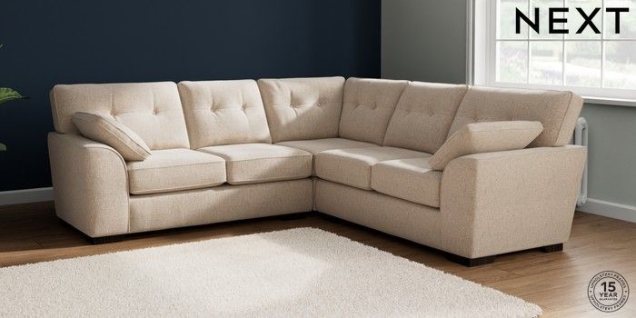 7.2.10 Stamford Buttoned Back Medium Corner Sofa - Universal Multi Weave Mid Natural Large Square Angle - Dark | Made Click here to use our website with more accessibility support, for example screen readers