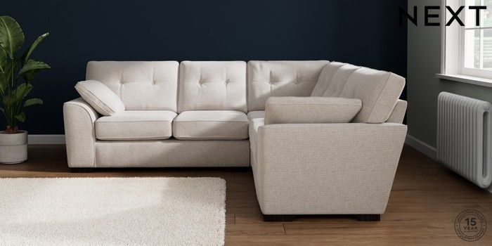 7.2.10 Stamford Buttoned Back Medium Corner Sofa - Universal Multi Weave Oyster Large Square Angle - Dark | Made Click here to use our website with more accessibility support, for example screen readers