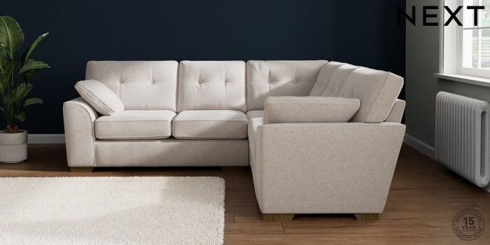 7.2.10 Stamford Buttoned Back Medium Corner Sofa - Universal Multi Weave Oyster Large Square Angle - Mid | Made Click here to use our website with more accessibility support, for example screen readers