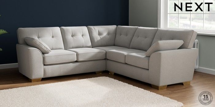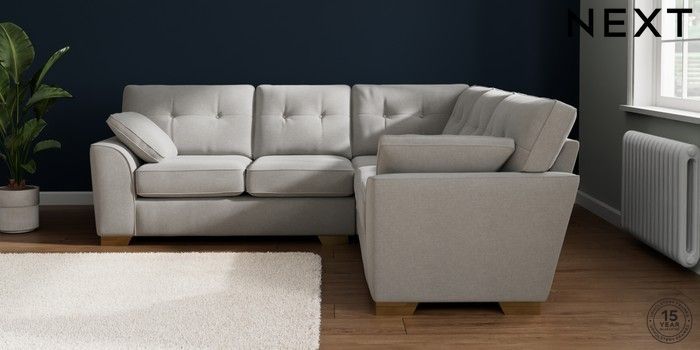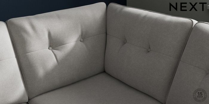 7.2.10 Stamford Buttoned Back Medium Corner Sofa - Universal Natural Mix Light Grey Large Square Angle - Brushed Brass | Made Click here to use our website with more accessibility support, for example screen readers