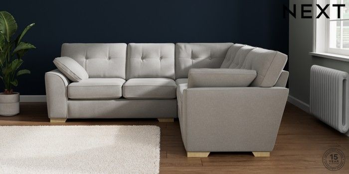 7.2.10 Stamford Buttoned Back Medium Corner Sofa - Universal Natural Mix Light Grey Large Square Angle - Light | Made Click here to use our website with more accessibility support, for example screen readers
