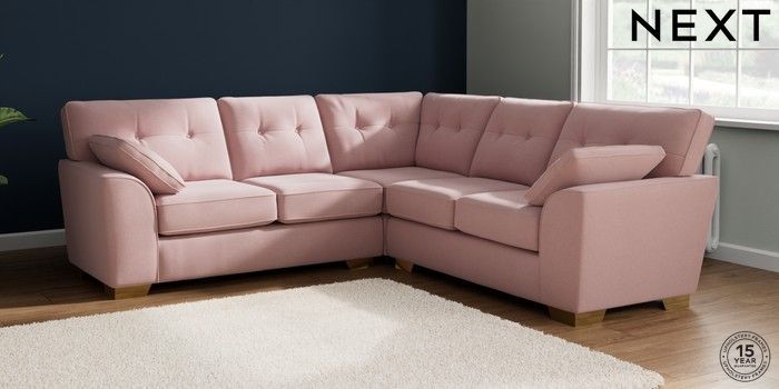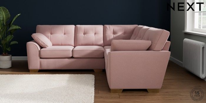7.2.10 Stamford Buttoned Back Medium Corner Sofa - Universal Natural Mix Light Rose Pink Large Square Angle - Brushed Brass | Made Click here to use our website with more accessibility support, for example screen readers