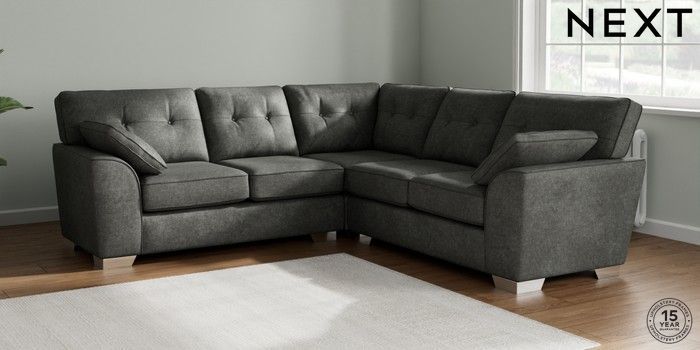 7.2.10 Stamford Buttoned Back Medium Corner Sofa - Universal Plush Chenille Dark Grey Large Square Angle - Chrome Metal | Made Click here to use our website with more accessibility support, for example screen readers