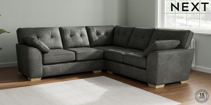 7.2.10 Stamford Buttoned Back Medium Corner Sofa - Universal Plush Chenille Dark Grey Large Square Angle - Light | Made Click here to use our website with more accessibility support, for example screen readers