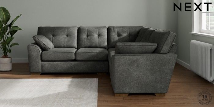 7.2.10 Stamford Buttoned Back Medium Corner Sofa - Universal Plush Chenille Dark Grey Large Square Angle - Mid | Made Click here to use our website with more accessibility support, for example screen readers