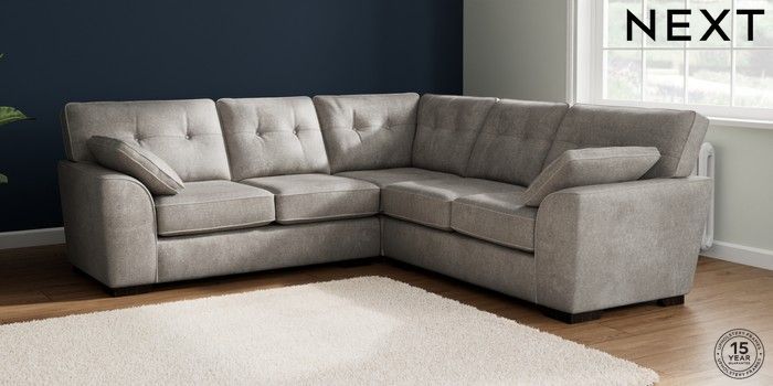 7.2.10 Stamford Buttoned Back Medium Corner Sofa - Universal Plush Chenille Light Grey Large Square Angle - Dark | Made Click here to use our website with more accessibility support, for example screen readers