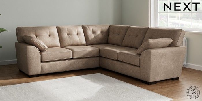 7.2.10 Stamford Buttoned Back Medium Corner Sofa - Universal Plush Chenille Mid Natural Large Square Angle - Dark | Made Click here to use our website with more accessibility support, for example screen readers