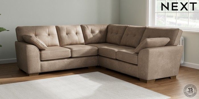 7.2.10 Stamford Buttoned Back Medium Corner Sofa - Universal Plush Chenille Mid Natural Large Square Angle - Mid | Made Click here to use our website with more accessibility support, for example screen readers