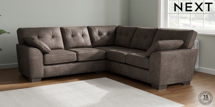 7.2.10 Stamford Buttoned Back Medium Corner Sofa - Universal Plush Chenille Mink Brown Large Square Angle - Gunmetal | Made Click here to use our website with more accessibility support, for example screen readers