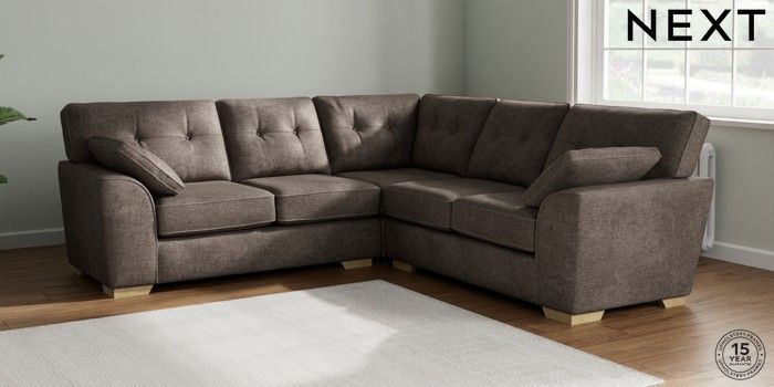 7.2.10 Stamford Buttoned Back Medium Corner Sofa - Universal Plush Chenille Mink Brown Large Square Angle - Light | Made Click here to use our website with more accessibility support, for example screen readers