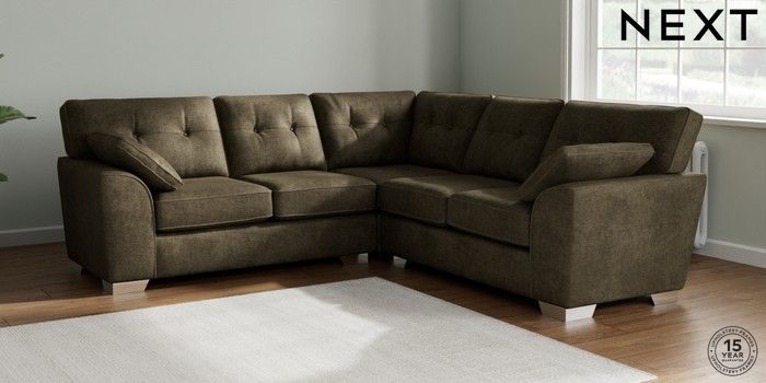 7.2.10 Stamford Buttoned Back Medium Corner Sofa - Universal Plush Chenille Moss Green Large Square Angle - Chrome Metal | Made Click here to use our website with more accessibility support, for example screen readers