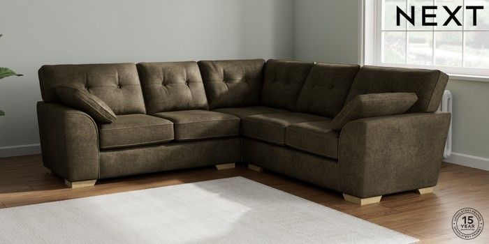 7.2.10 Stamford Buttoned Back Medium Corner Sofa - Universal Plush Chenille Moss Green Large Square Angle - Light | Made Click here to use our website with more accessibility support, for example screen readers