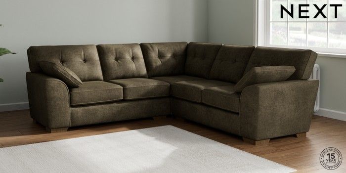 7.2.10 Stamford Buttoned Back Medium Corner Sofa - Universal Plush Chenille Moss Green Large Square Angle - Mid | Made Click here to use our website with more accessibility support, for example screen readers