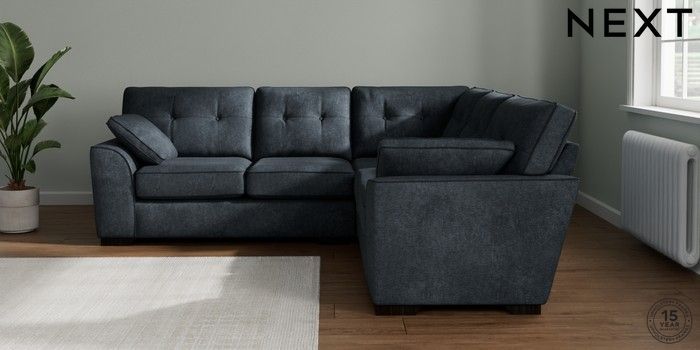 7.2.10 Stamford Buttoned Back Medium Corner Sofa - Universal Plush Chenille Slate Blue Large Square Angle - Dark | Made Click here to use our website with more accessibility support, for example screen readers