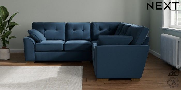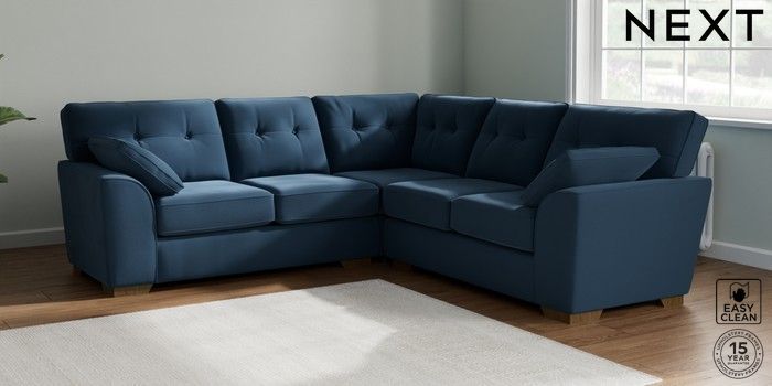 7.2.10 Stamford Buttoned Back Medium Corner Sofa - Universal Plush Velvet Easy Clean Airforce Blue Large Square Angle - Mid | Made Click here to use our website with more accessibility support, for example screen readers