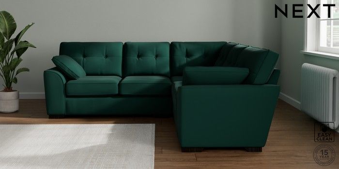 7.2.10 Stamford Buttoned Back Medium Corner Sofa - Universal Plush Velvet Easy Clean Bottle Green Large Square Angle - Dark | Made Click here to use our website with more accessibility support, for example screen readers