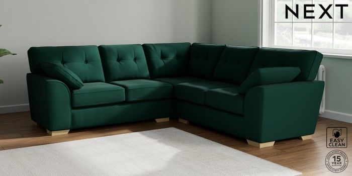7.2.10 Stamford Buttoned Back Medium Corner Sofa - Universal Plush Velvet Easy Clean Bottle Green Large Square Angle - Light | Made Click here to use our website with more accessibility support, for example screen readers