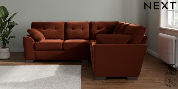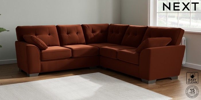 7.2.10 Stamford Buttoned Back Medium Corner Sofa - Universal Plush Velvet Easy Clean Ginger Orange Large Square Angle - Gunmetal | Made Click here to use our website with more accessibility support, for example screen readers