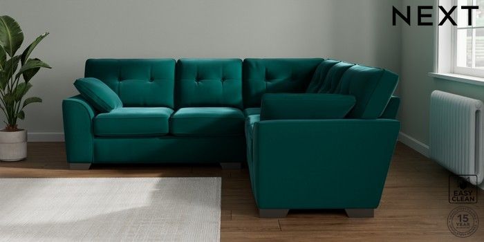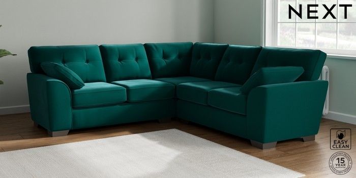 7.2.10 Stamford Buttoned Back Medium Corner Sofa - Universal Plush Velvet Easy Clean Juniper Green Large Square Angle - Gunmetal | Made Click here to use our website with more accessibility support, for example screen readers