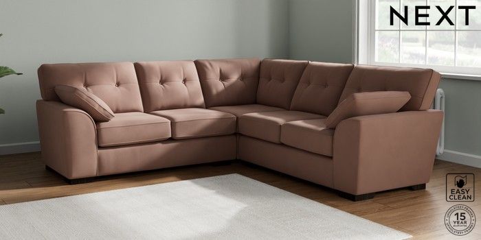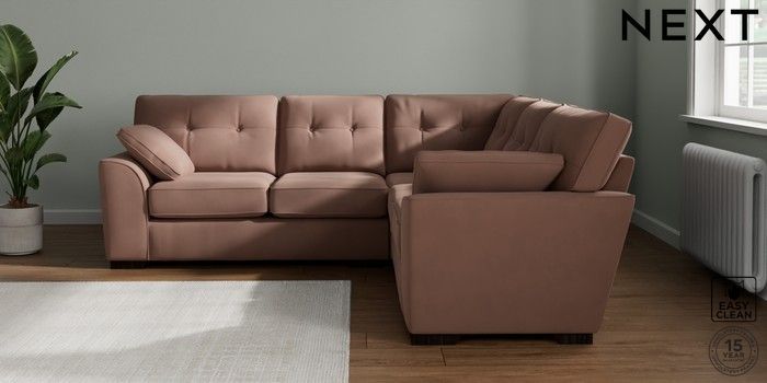 7.2.10 Stamford Buttoned Back Medium Corner Sofa - Universal Plush Velvet Easy Clean Mid Natural Large Square Angle - Dark | Made Click here to use our website with more accessibility support, for example screen readers