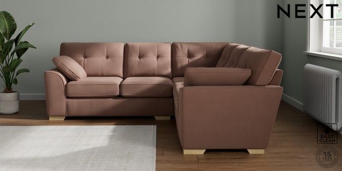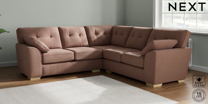 7.2.10 Stamford Buttoned Back Medium Corner Sofa - Universal Plush Velvet Easy Clean Mid Natural Large Square Angle - Light | Made Click here to use our website with more accessibility support, for example screen readers
