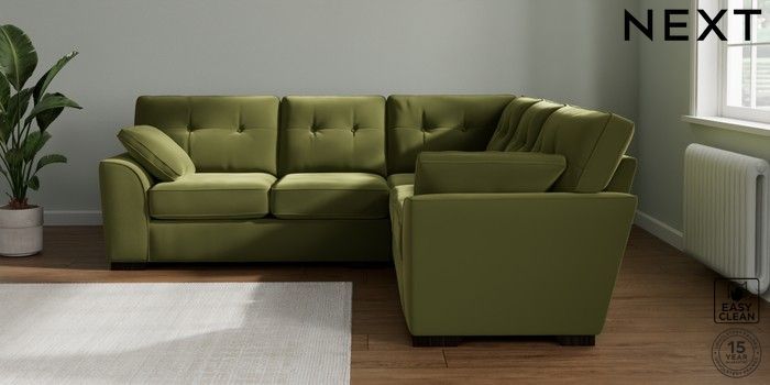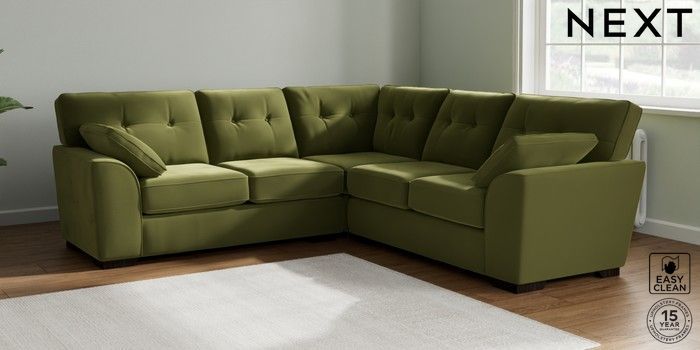 7.2.10 Stamford Buttoned Back Medium Corner Sofa - Universal Plush Velvet Easy Clean Mid Olive Green Large Square Angle - Dark | Made Click here to use our website with more accessibility support, for example screen readers