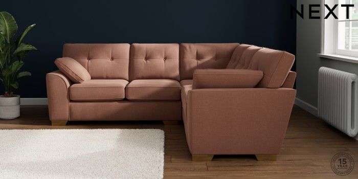 7.2.10 Stamford Buttoned Back Medium Corner Sofa - Universal Relaxed Linen Look Light Rust Brown Large Square Angle - Brushed Brass | Made Click here to use our website with more accessibility support, for example screen readers