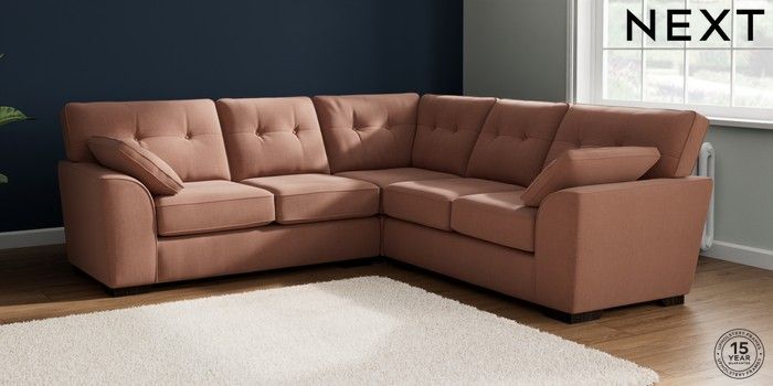7.2.10 Stamford Buttoned Back Medium Corner Sofa - Universal Relaxed Linen Look Light Rust Brown Large Square Angle - Dark | Made Click here to use our website with more accessibility support, for example screen readers