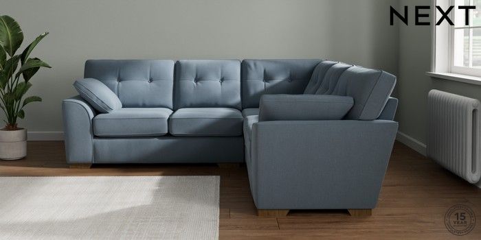 7.2.10 Stamford Buttoned Back Medium Corner Sofa - Universal Relaxed Linen Look Mid Blue Large Square Angle - Mid | Made Click here to use our website with more accessibility support, for example screen readers