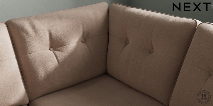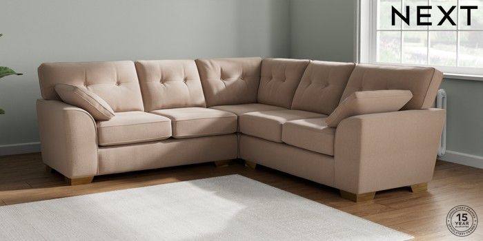 7.2.10 Stamford Buttoned Back Medium Corner Sofa - Universal Relaxed Linen Look Mid Natural Large Square Angle - Brushed Brass | Made Click here to use our website with more accessibility support, for example screen readers