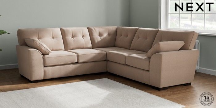 7.2.10 Stamford Buttoned Back Medium Corner Sofa - Universal Relaxed Linen Look Mid Natural Large Square Angle - Dark | Made Click here to use our website with more accessibility support, for example screen readers