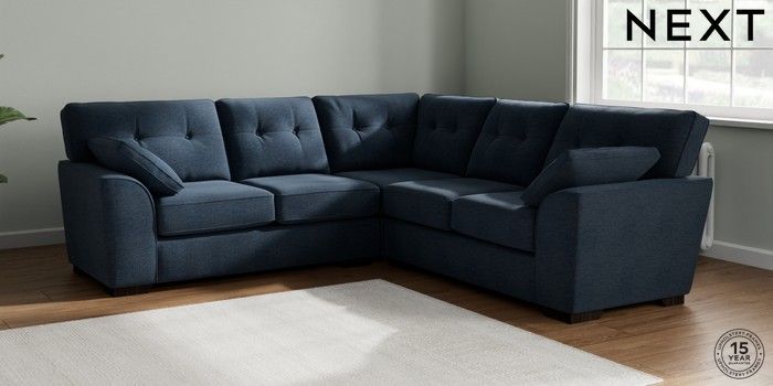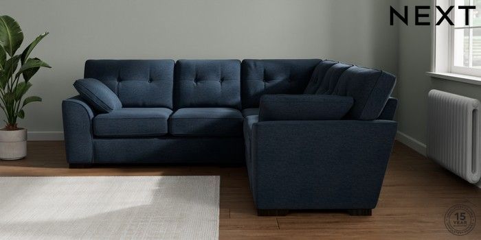 7.2.10 Stamford Buttoned Back Medium Corner Sofa - Universal Ripple Chenille Dark Blue Large Square Angle - Dark | Made Click here to use our website with more accessibility support, for example screen readers
