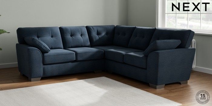 7.2.10 Stamford Buttoned Back Medium Corner Sofa - Universal Ripple Chenille Dark Blue Large Square Angle - Gunmetal | Made Click here to use our website with more accessibility support, for example screen readers