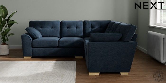 7.2.10 Stamford Buttoned Back Medium Corner Sofa - Universal Ripple Chenille Dark Blue Large Square Angle - Light | Made Click here to use our website with more accessibility support, for example screen readers