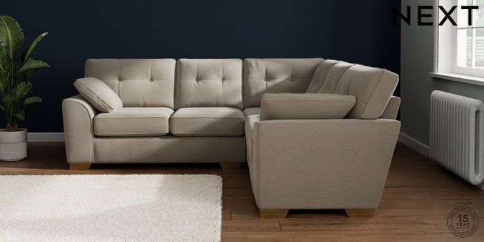 7.2.10 Stamford Buttoned Back Medium Corner Sofa - Universal Ripple Chenille Light Natural Large Square Angle - Brushed Brass | Made Click here to use our website with more accessibility support, for example screen readers