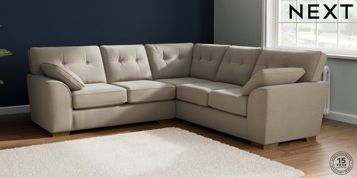 7.2.10 Stamford Buttoned Back Medium Corner Sofa - Universal Ripple Chenille Light Natural Large Square Angle - Mid | Made Click here to use our website with more accessibility support, for example screen readers