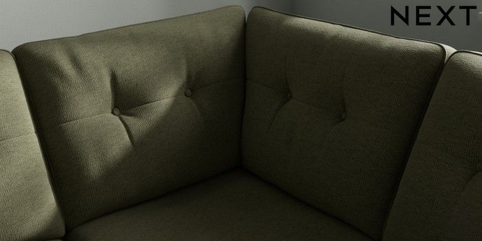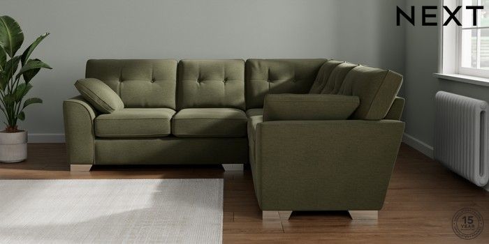7.2.10 Stamford Buttoned Back Medium Corner Sofa - Universal Ripple Chenille Mid Moss Green Large Square Angle - Chrome Metal | Made Click here to use our website with more accessibility support, for example screen readers
