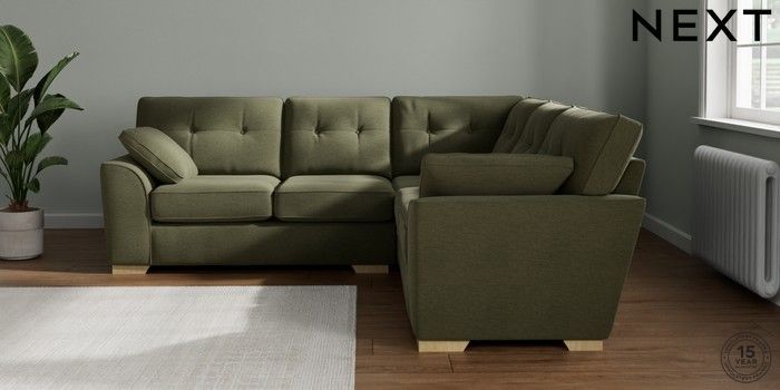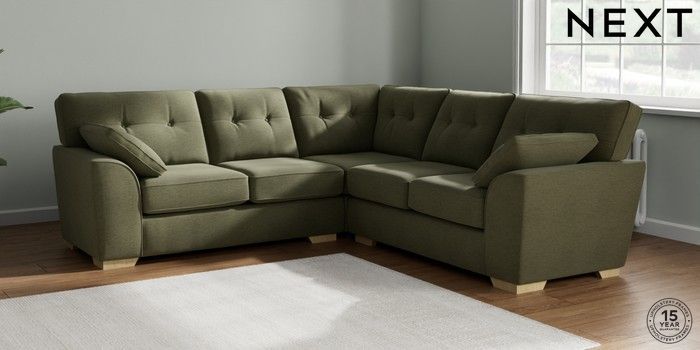 7.2.10 Stamford Buttoned Back Medium Corner Sofa - Universal Ripple Chenille Mid Moss Green Large Square Angle - Light | Made Click here to use our website with more accessibility support, for example screen readers