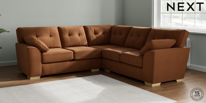 7.2.10 Stamford Buttoned Back Medium Corner Sofa - Universal Ripple Chenille Mid Rust Brown Large Square Angle - Light | Made Click here to use our website with more accessibility support, for example screen readers