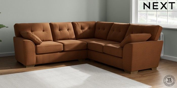 7.2.10 Stamford Buttoned Back Medium Corner Sofa - Universal Ripple Chenille Mid Rust Brown Large Square Angle - Mid | Made Click here to use our website with more accessibility support, for example screen readers