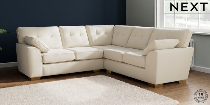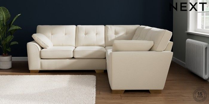 7.2.10 Stamford Buttoned Back Medium Corner Sofa - Universal Ripple Chenille Oyster Large Square Angle - Brushed Brass | Made Click here to use our website with more accessibility support, for example screen readers