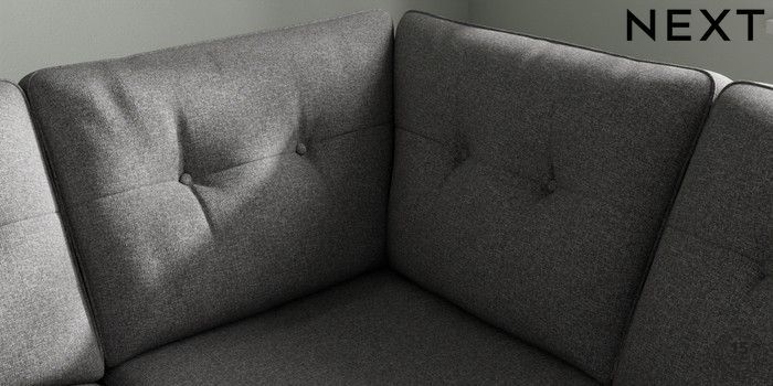 7.2.10 Stamford Buttoned Back Medium Corner Sofa - Universal Studio Chenille Mid Grey Large Square Angle - Chrome Metal | Made Click here to use our website with more accessibility support, for example screen readers