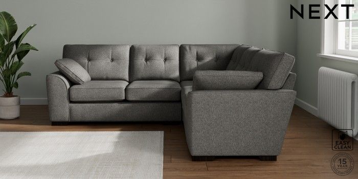 7.2.10 Stamford Buttoned Back Medium Corner Sofa - Universal Tweedy Blend Easy Clean Dark Grey Large Square Angle - Dark | Made Click here to use our website with more accessibility support, for example screen readers