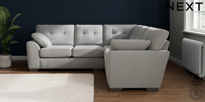 7.2.10 Stamford Buttoned Back Medium Corner Sofa - Universal Tweedy Blend Easy Clean Light Silver Grey Large Square Angle - Gunmetal | Made Click here to use our website with more accessibility support, for example screen readers