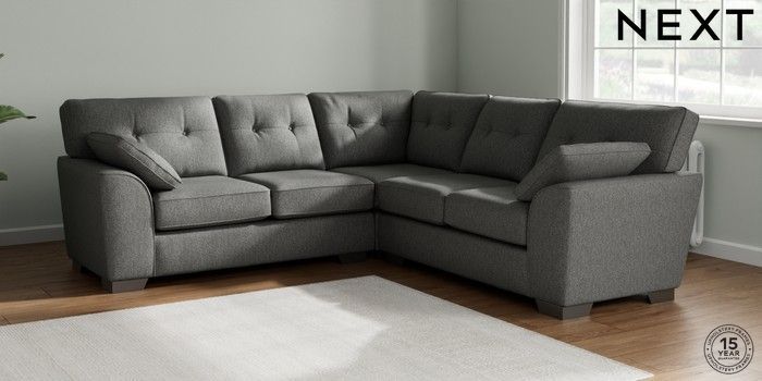 7.2.10 Stamford Buttoned Back Medium Corner Sofa - Universal Tweedy Chenille Dark Grey Large Square Angle - Gunmetal | Made Click here to use our website with more accessibility support, for example screen readers