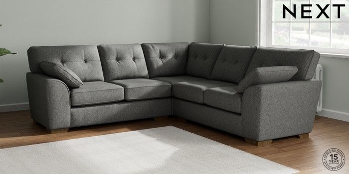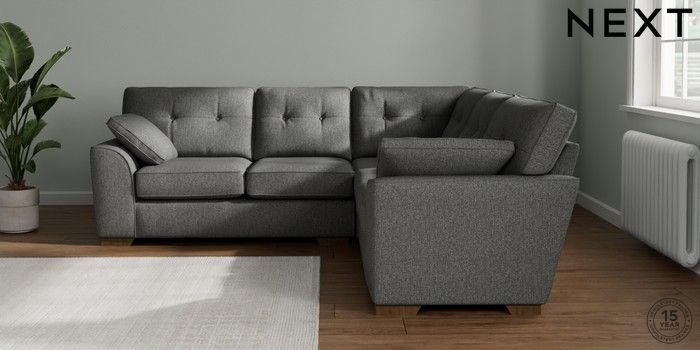 7.2.10 Stamford Buttoned Back Medium Corner Sofa - Universal Tweedy Chenille Dark Grey Large Square Angle - Mid | Made Click here to use our website with more accessibility support, for example screen readers