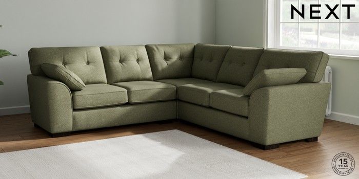 7.2.10 Stamford Buttoned Back Medium Corner Sofa - Universal Tweedy Chenille Mid Moss Green Large Square Angle - Dark | Made Click here to use our website with more accessibility support, for example screen readers