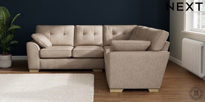 7.2.10 Stamford Buttoned Back Medium Corner Sofa - Universal Tweedy Chenille Mid Natural Large Square Angle - Light | Made Click here to use our website with more accessibility support, for example screen readers