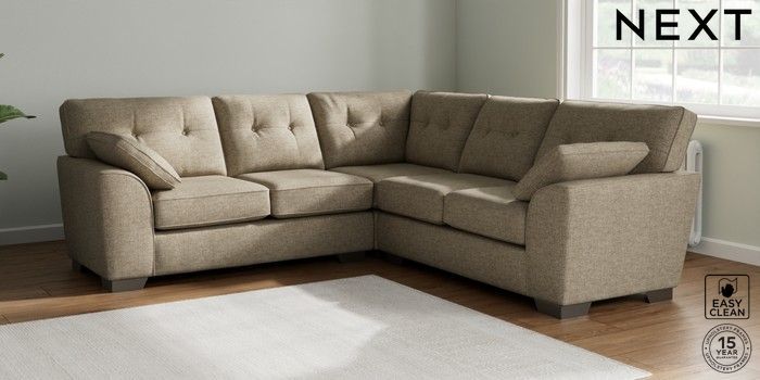 7.2.10 Stamford Buttoned Back Medium Corner Sofa - Universal Woven Chenille Easy Clean Mid Natural Large Square Angle - Gunmetal | Made Click here to use our website with more accessibility support, for example screen readers